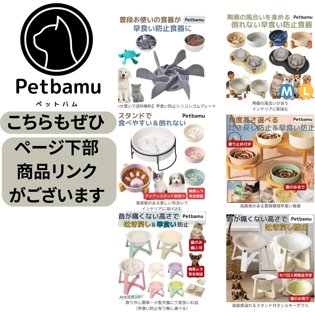 【電子レンジ対応&早食い防止】首にやさしい陶器製ペット用フードボウル 毎日の「食べやすさ」と「健康」を考えて開発されたPetbamuの陶器製フードボウル。 猫ちゃん・小型犬の首や胃への負担を軽減し、吐き戻し・誤嚥・早食いなどを防ぎます。 ■ 商品の特長 ・首にやさしい高さと角度設計で、自然な姿勢で食べやすい ・凹凸のある内部で早食いを防止 ・前傾角度でフードが手前に集まり、こぼれにくく食べやすい ・電子レンジ対応で温めもOK。香りが立ち、食欲アップ ・汚れが付きにくくお手入れ簡単。食洗機対応 ・重みのあるセラミック素材で安定感抜群 ■ 早食い防止の必要性 ・胃への負担や吐き戻しの原因に ・ガスが溜まりやすく、胃拡張・胃捻転のリスク ・誤嚥による喉詰まりの危険 → 凹凸構造のボウルでリスク軽減! ■ サイズ・容量(選べる2タイプ) 【こぼれない斜め猫型】 直径:約15cm、高さ:約6〜13cm、容量:約32g、重さ:538g / 約100ml 傾斜あり・誤嚥対策・エリザベスカラー使用時にも◎ 【平らなシンプル型】 直径:約15cm、高さ:約9cm、容量:約32g / 約200m / 重さ538g 安定感重視、水入れ用にもおすすめ ■ カラーバリエーション こぼれない斜め猫型: ミルキーピンク(かわいい淡色) ミルキーブルー(落ち着いた水色) リリーグリーン(自然な緑) オフホワイト(どんな部屋にもマッチ) 平らなシンプル型: パールホワイト(光沢感あり) ミルキーピンク(やさしい印象) ミルキーブルー(爽やかで清潔感) リリーグリーン(ナチュラルな色味) ■ 小型犬・猫にぴったりの容量設計 例:体重2kgの猫や小型犬 → 1日50〜60g(1回25〜30g) 本商品はフード約32gに対応しており、食べすぎ・こぼれの心配なく、最適な量で快適に食べられます。 ■ セット購入にもおすすめ 本商品は水入れ用としても使用可能。特に「平らなシンプル型」は最大200mlの水に対応。 食事用と水用をセットで使うことで、見た目の統一感と清潔さが保てます。 毎日使うものだからこそ、使いやすさ・清潔さ・健康への配慮がすべてそろったフードボウルをぜひお試しください。 店舗用検索キーワード 食べやすい 斜め 倒れない こぼれにくい 高さがある ひっくり返さない ひっくり返らない 水分補給 多頭飼い 脚付き 洗いやすい セット おしゃれ おすすめ 人気 送料無料 食器 餌入れ フードボウル 餌皿 お皿 食器台 ご飯台 餌台 水入れ 水飲み皿 水飲みボウル 水飲み台 水入れ器 フードボール ボウル 餌入れ容器 猫用 猫用食器 猫用フードボウル 猫餌入れ 猫エサ入れ 猫エサ皿 猫餌皿 猫ご飯皿 猫ごはん入れ 猫のフードボウル 猫の水飲み 猫の器 猫の餌入れ 猫の餌皿 猫の餌台 猫の餌置き台 猫水入れ 猫水飲み ネコ ねこ ネコ食器 ねこ食器 ネコ餌入れ ねこ餌入れ ねこのフードボウル ネコのフードボウル ネコの餌入れ ネコの水入れ ねこの水入れ ねこの餌入れ 犬 犬用 犬用食器 犬用フードボウル 犬用餌入れ 犬フードボウル 犬食器 犬食器台 犬のフードボウル 犬の食器 犬の餌入れ 犬の水飲み 犬水入れ 犬水飲み皿 犬用ウォーターボウル 犬猫 犬猫用食器 犬猫用フードボウル 犬猫用餌入れ 犬猫の餌入れ 犬猫のご飯皿 子猫 子犬 小型犬 イヌ うさぎ ペット 陶器 セラミック 磁器 丸い 高さ 台 固定 エサ入れ エサ皿 ペット食器 ペット用フードボウル ペット用食器 ペット用餌入れ ペットの食器 ペットフードボウル ペットの餌入れ ペット餌入れ ペット食器台 水がおいしくなる エリザベスカラー ヒゲが当たらない ヒゲ 1個 2匹 ネコグッズ 猫グッズ ペットグッズ 楽天マラソン お買い物マラソン 楽天お買い物マラソン 楽天マラソンSALE 楽天マラソンセール お買い物マラソン対象 楽天マラソン対象アイテム 楽天スーパーSALE 楽天スーパーセール 楽天スーパーセール2025 犬早食い防止食器 お皿 早食い防止用の食器 わんちゃん 中型犬 パピー ご飯入れ チワワ 柴犬 フレンチブルドッグ 陶器製早食い防止皿 超小型犬 鼻ぺちゃ 猫早食い防止フードボウル 犬早食い防止フードボウル 脚付 脚付き 脚付きフードボウル トイプードル 脚付フードボウル スローフィーダー ハイ スタンド 吐き戻し軽減ボウル 防ぐ 角度 犬猫兼用 すべり止め 安定感 重たい 洗いやすい 高さ付き 北欧 北欧風 食べやすい ガタつかない 重い シンプル ペット用品 インテリアになじむ 2個セット モノトーン ひっくり返らない こぼれる ズレない 滑らない 動かない ハイタイプ ストレス軽減 多頭飼い シニア犬 ゆっくり食べる皿 角度付き 傾斜設計 成犬 ハイスタンド ペット早食い防止食器 猫の食器 犬の食器猫早食い防止食器 パピー パグ フードボウル皿 スローフードボウルお気に入り商品に追加 他のフードボウルはこちら > ▼ 関連商品はこちら をクリック ▼ 【合わせ買いで送料無料】早食い防止シリコンゴムプレート 陶器の風合いがありインテリアに馴染む 清潔感のある美しい色合いでインテリアに溶け込む 高級感のある薔薇模様早食い食器 取り外し簡単・小型犬猫に丁度良いお皿(早食い防止有り無し選