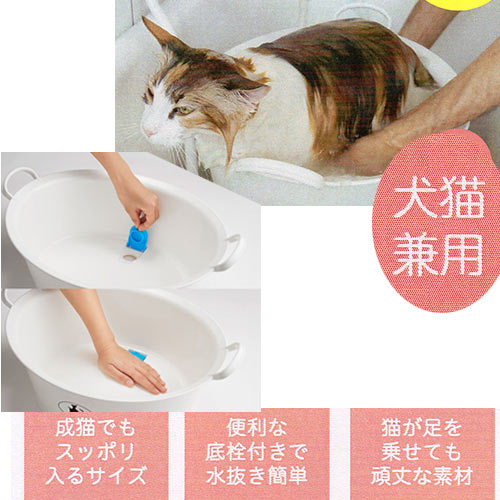 当店は(株)たかくら新産業から認定正規取扱店として認証された店舗です。猫シャンプーを楽しく&便利にするミニバス。猫は水音や刺激に敏感で、シャンプー時の環境づくりは非常に重要です。キャット用ミニバスは、成猫でもスッポリ入るサイズ&便利な底栓付きで猫にストレスなくシャンプーすることができます。[POINT]・成猫でもスッポリ入るサイズ。・便利な底栓付きで水抜き簡単。・猫が足を乗せても頑丈な素材。おすすめの使い方。1.ミニバスにお湯をはり、薄めたシャンプー液を入れて泡立てておきます。2.猫を抱っこした状態でお尻から全身を入れてお湯をかけててあげながら、洗います。3.蛇口からお湯を注ぎながら体を入れて洗い流し、底栓を外してお湯を入れ替えます。サイズ容量12L 47.5×36×H20.5cm材質本体/ポリプロピレン 底栓/EV樹脂 メーカー(株)たかくら新産業