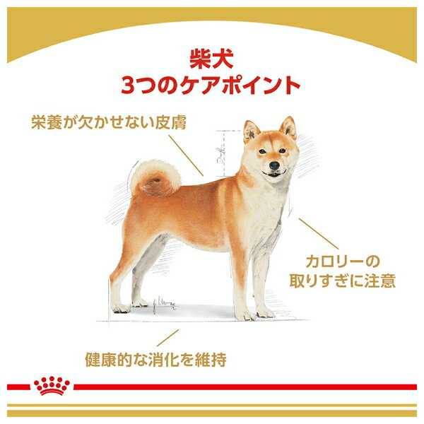 商品の特徴 ◇ロイヤルカナン 柴犬 専用フード 子犬用 3kg 犬用 ドライフード ロイヤルカナンが柴犬のために考える健康な皮膚・被毛の維持に必要な栄養バランス 柴犬は、密度の高いアンダーコート(下毛)を持つ犬種で、皮膚・被毛の健康を維持するためには特別な配慮が必要です。また、太りやすい傾向があります。オメガ3&6系不飽和脂肪酸を配合しつつ、脂肪及びカロリー含有量を調整するなど、ロイヤルカナン独自の犬種ごとに最適な栄養バランスで愛犬の健康をサポートします。 成長期の柴犬のために特別に開発されたキブル(粒) 成長期の柴犬のあごでも簡単に捉えられて、しっかりと噛めるように設計された、最適な大きさ、形、食感のキブル(粒)です。 健康を維持することで免疫力をサポート 成長期は犬の一生のなかで、極めて重要な期間です。日々新しい発見や出会いを積み重ねるとともに、身体が大きく成長していきます。子犬の免疫機能は、この重要な期間に少しずつ発達していきます。<柴犬 子犬用>は、ビタミンEを含む、独自の抗酸化成分の配合が健康を維持することで、子犬本来の抵抗力を維持します。 健康な皮膚と被毛を維持 健康状態は皮膚と被毛に表れるため、適切な栄養バランスの食事による皮膚と被毛の健康維持が重要です。<柴犬 子犬用>は、EPA・DHA、ルリチシャ油などの栄養素を独自のバランスで配合することで、健康な皮膚と被毛を維持します。 健康的な消化を維持 消化性の高いタンパク質(L.I.P.*)とプレバイオティックス(フラクトオリゴ糖)の組み合わせが、健康的な消化を維持するとともに、腸内細菌バランスを整え、健康的な糞便の状態を維持します。 *L.I.P.:消化率90%以上の超高消化性タンパク(ロイヤルカナン調べ) L.I.P 消化率90%以上の超高消化性タンパク(ロイヤルカナン調べ) 製品仕様 ライフステージ:12カ月(仔) 粒形状:通常粒 原産国:フランス 原材料:家禽ミート、米、とうもろこし粉、動物性脂肪、植物性分離タンパク、とうもろこし、コーングルテン、加水分解動物性タンパク、ビートパルプ、魚油、酵母、大豆油、植物性繊維、サイリウム、フラクトオリゴ糖、ポリリン酸ナトリウム、加水分解酵母、ルリチシャ油、マリーゴールド抽出物、アミノ酸類、ゼオライト、ミネラル類、ビタミン類、保存料、酸化防止剤 JANコード:3182550823944 ※商品詳細につきましてはメーカーHP等よりご確認下さいますようお願いいたします。※商品のデザイン、仕様は予告なく変更する場合がありますのでご了承ください。 ※多くのお客様にご購入いただくため、当社が転売行為を目的としたご注文と判断した場合はご注文をお断りさせて頂く場合がございます。 また、同一のお客様による注文が複数あり、当社が禁止事項にあたると判断した場合は今後一切のご注文をお断りさせて頂く場合がございますのでご了承ください。