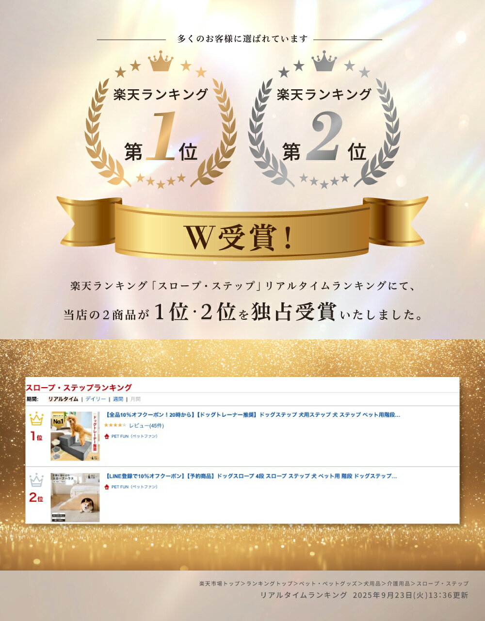 ▼▼▼ こちらもおすすめ ▼▼▼ L字構造で安定感抜群 ペットキャリー 日常を彩る5colors 伸縮リード ◎選ばれるポイント◎ 【1、洗練されたデザイン】 高級感あふれる木製フレーム。 天然木の質感と美しい木目で、家具のような存在感。インテリア性も抜群です。 【2,重量があり安定感抜群】 しっかりした木製構造で安定感があり、勢いをつけて登っても動かず安心して昇降できます。 【3,頑丈な作りで安心】 スロープ部分で85kg、ベンチ部で100kgと、人が座っても問題ない頑丈なつくり。 人との腰掛け用椅子、踏み台としても使用可能です。 【4,長く使える高耐久性】 しっかりした木製構造で安定感があり、勢いをつけて登っても動かず安心して昇降できます。 ・ペットが無理なく昇降できる角度で、足腰への負担を軽減 ・足元が安定する幅広設計で、小型〜中型犬まで対応 【5,頑丈で長持ちなクッション】 ポリウレタンフォームを使用。 ウレタンクッションタイプに比べ型崩れしにくく、安定した使用が長く続きます。 【6,お手入れ簡単】 クッションは取り外し可能。 洗濯機で簡単お手入れでき、ずっと清潔にご使用いただけます。 サイズ (約)44×103×40cm 重量 (約)11.8kg 材質 (土台) 中質繊維板(MDF)、(表面生地)ポリエステル、(クッション)ポリウレタンフォーム 耐荷重 (スロープ部分)85kg(ベンチ部分)100kg 仕様 組み立て式 同梱物 取扱説明書 ※ご注意ください※ ※手作業で計測しているため、サイズに多少の誤差がございます。 ※商品写真はできる限り実物に近づけるようにしておりますが、お使いのモニター設定、お部屋の照明等により実際の商品と色味が異なる場合がございます。 ■関連キーワード 犬ドッグ ステップ 幅広 おすすめ ベッド ハウス おしゃれ 4段 洗える 老犬 大きめ 小型犬 中型犬 カバー 可愛い 階段 白 柴犬 収納 人気 ゆるやか 犬用 ペット シニア 高さ 室内 ソファ 踏み台 やさしい ウッド 楽天▼▼▼ こちらもおすすめ ▼▼▼ L字構造で安定感抜群 ペットキャリー 日常を彩る5colors 伸縮リード ◎選ばれるポイント◎ 【1、洗練されたデザイン】 高級感あふれる木製フレーム。 天然木の質感と美しい木目で、家具のような存在感。インテリア性も抜群です。 【2,重量があり安定感抜群】 しっかりした木製構造で安定感があり、勢いをつけて登っても動かず安心して昇降できます。 【3,頑丈な作りで安心】 スロープ部分で85kg、ベンチ部で100kgと、人が座っても問題ない頑丈なつくり。 人との腰掛け用椅子、踏み台としても使用可能です。 【4,長く使える高耐久性】 しっかりした木製構造で安定感があり、勢いをつけて登っても動かず安心して昇降できます。 ・ペットが無理なく昇降できる角度で、足腰への負担を軽減 ・足元が安定する幅広設計で、小型〜中型犬まで対応 【5,頑丈で長持ちなクッション】 ポリウレタンフォームを使用。 ウレタンクッションタイプに比べ型崩れしにくく、安定した使用が長く続きます。 【6,お手入れ簡単】 クッションは取り外し可能。 洗濯機で簡単お手入れでき、ずっと清潔にご使用いただけます。 サイズ (約)44×103×40cm 重量 (約)11.8kg 材質 (土台) 中質繊維板(MDF)、(表面生地)ポリエステル、(クッション)ポリウレタンフォーム 耐荷重 (スロープ部分)85kg(ベンチ部分)100kg 仕様 組み立て式 同梱物 取扱説明書 ※ご注意ください※ ※手作業で計測しているため、サイズに多少の誤差がございます。 ※商品写真はできる限り実物に近づけるようにしておりますが、お使いのモニター設定、お部屋の照明等により実際の商品と色味が異なる場合がございます。 ■関連キーワード 犬ドッグ ステップ 幅広 おすすめ ベッド ハウス おしゃれ 4段 洗える 老犬 大きめ 小型犬 中型犬 カバー 可愛い 階段 白 柴犬 収納 人気 ゆるやか 犬用 ペット シニア 高さ 室内 ソファ 踏み台 やさしい ウッド 楽天