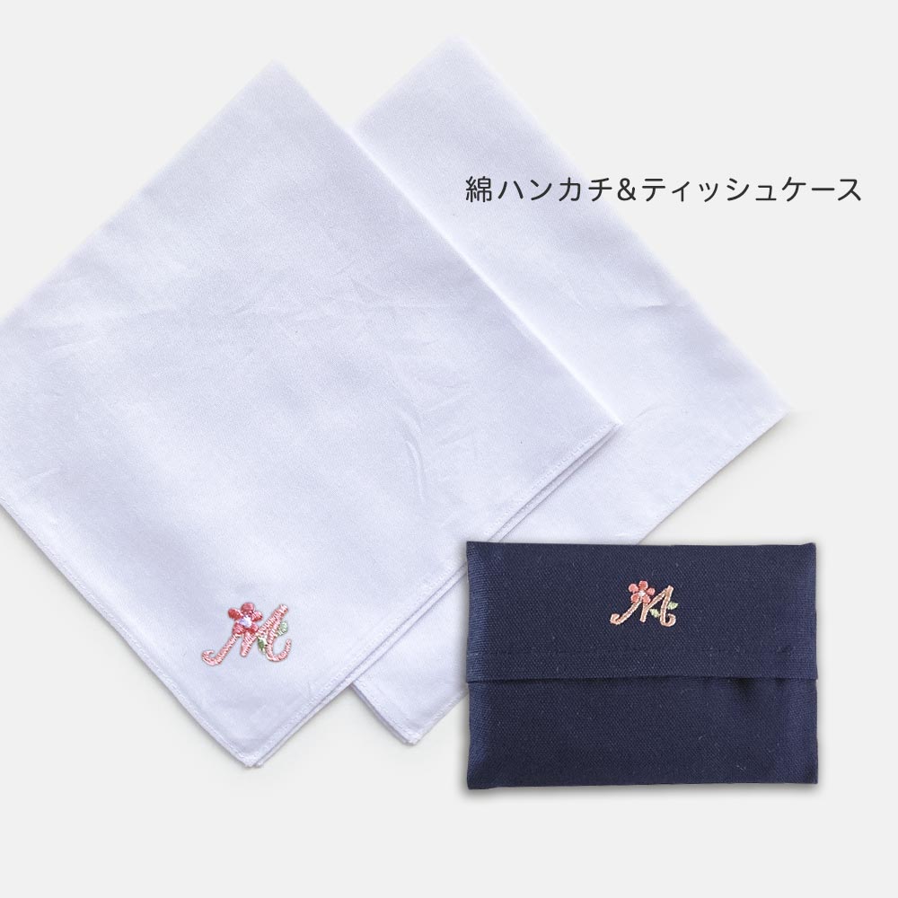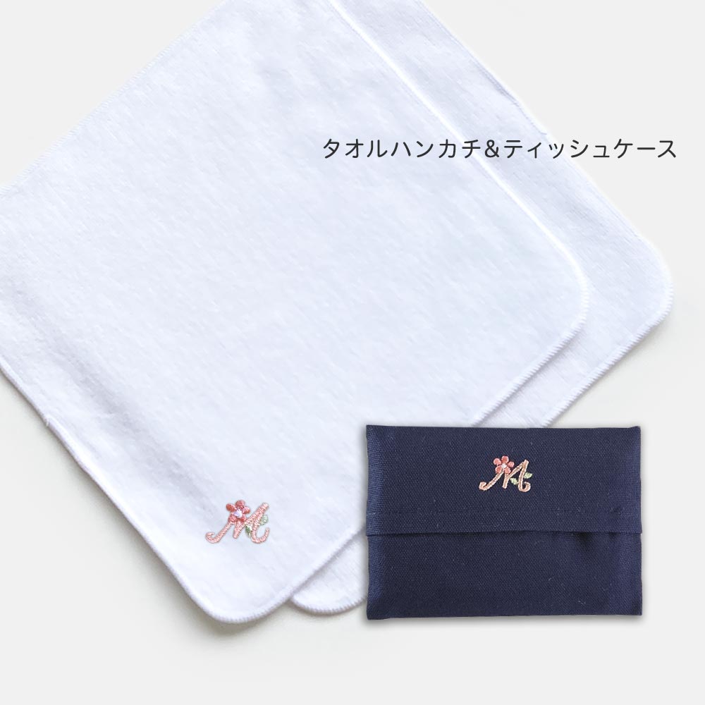 3点セット【選べるイニシャル刺繍とハンカチ】ミニタオル 綿 ハンカチ ティッシュケース お受験 入園 入学準備 ギフトにも 日本製