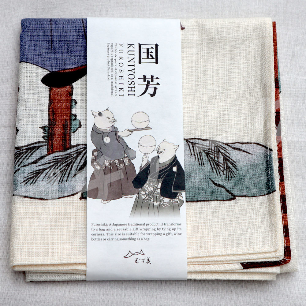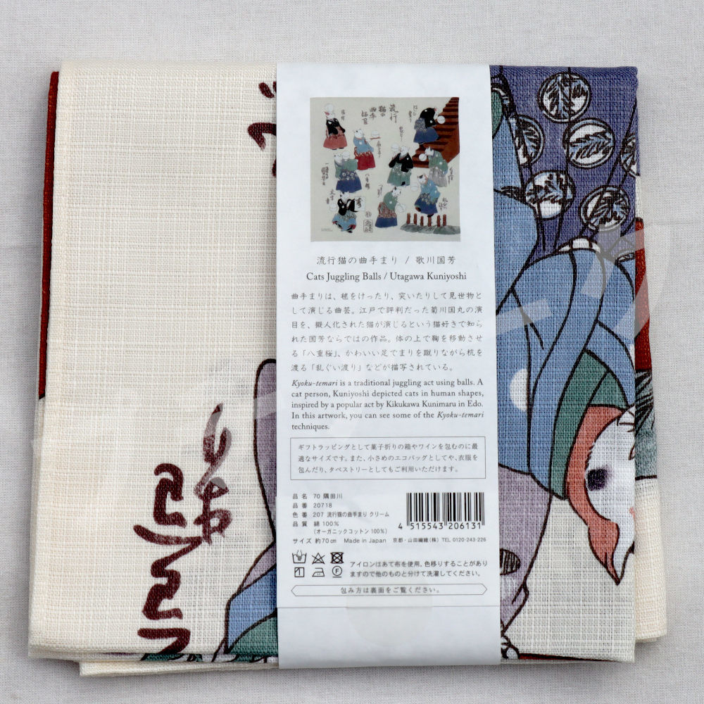 日本製 ふろしき 浮世絵 流行猫の曲手まり 歌川国芳 隅田川 クリーム 70×70cm 送料込み