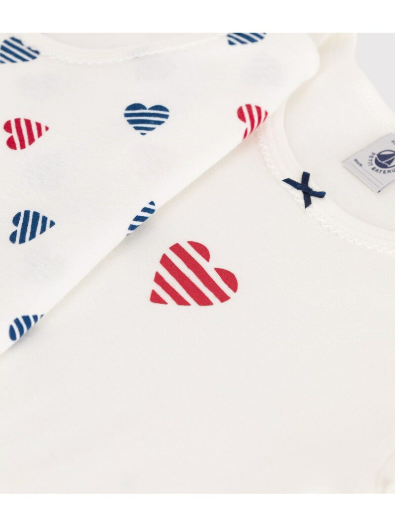 【予約商品について】 ※「先行予約販売中」「予約販売中」をご注文の際は予約商品についてをご確認ください。■重要なお知らせ※ 当店では、ギフト配送サービス及びラッピングサービスを行っておりません。ラッピング・ギフト配送について同時に複数の商品を注文された場合メーカー希望小売価格について置き配についてご利用ガイドPETIT BATEAU(プチバトー)半袖Tシャツ2枚組異なるパターンのボーダーハート柄で揃えた半袖Tシャツ2枚セットです。環境にやさしく、第二の肌と呼ばれるほどやわらかな1x1リブ編みオーガニックコットン素材が、ナチュラルでやわらかな着心地を実現しています。首元のリボンとピコレースがデザインのポイント。インナーとしても、これ一枚でも活躍する何枚あっても嬉しいアイテムは、ご自宅での使用はもちろん、特別なギフトとしてもおすすめです。※濃色の製品は、摩擦や洗濯の際に色落ちや色移りをする場合があります。中性洗剤で単独洗いをしてください。型番:A0D2CB-00-100 NS8010【採寸】サイズ着丈身幅袖丈6才 116cm43.5cm28cm11.5cm8才 128cm47cm29cm12.8cm10才 140cm50.5cm31cm13.5cm12才 152cm54cm32.5cm14.2cm商品のサイズについて【商品詳細】モロッコ素材:100%綿サイズ:6才 116cm、8才 128cm、10才 140cm、12才 152cm※画面上と実物では多少色具合が異なって見える場合もございます。ご了承ください。商品のカラーについて