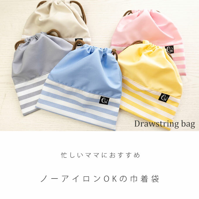 ノーアイロン シワになりにくい 巾着袋 巾着 コップ入れ コップ袋 給食袋 日本製 バッグ ポーチ 小 中 入園準備 入学準備 男の子 女の子 ベビー キッズ シンプル 無地 【ネコポスOK】 kbni