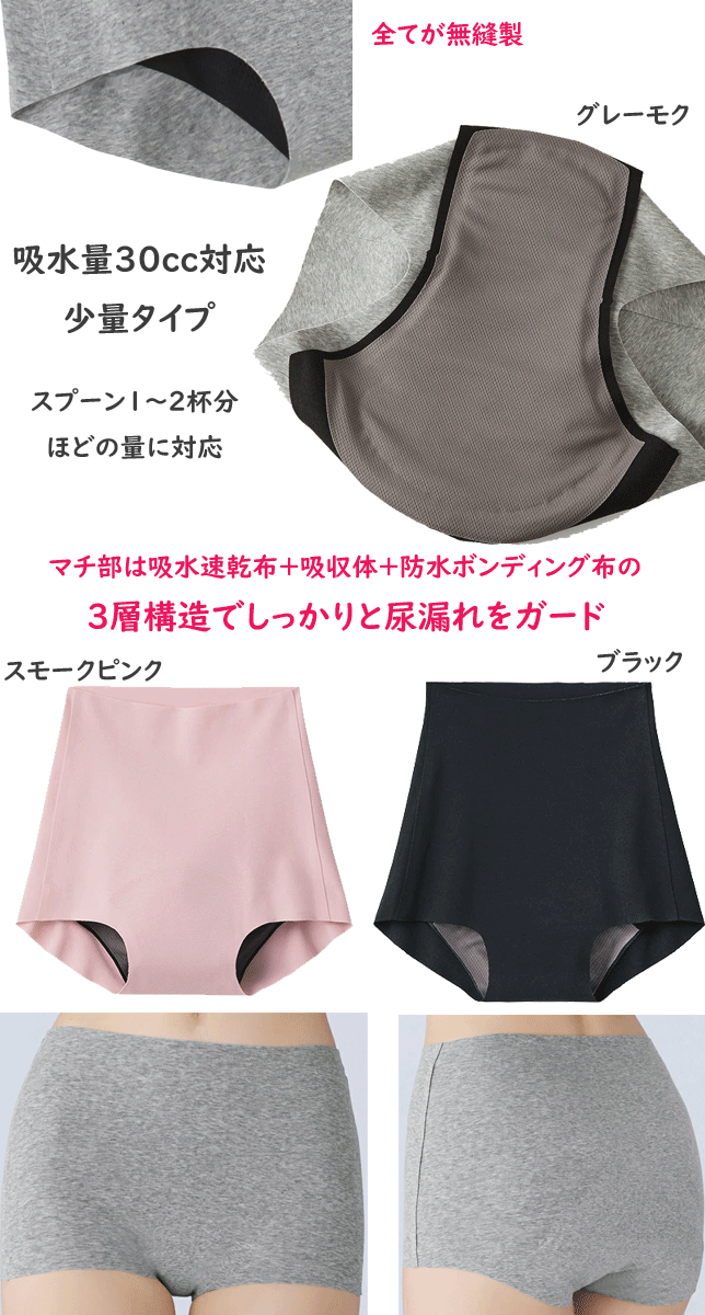 スクール用品をチェック⇒ ハピラン 通学用ランドセル ラクリ 通学用ランリュック 新しい通学用ランドセル 学生服富士ヨット セーラー服富士ヨット カッターシャツ半袖・長袖 セーラー用インナー半袖・長袖Tシャツ スクールベルト小学生・中学生・高校生 スクールコートダッフルコート レインコート・傘小学生・中学生・高校生 文房具名札ケース デサントスクールバッグ ◆ インナーウエアー をチェック ◆ メンズグンゼ レディースグンゼ ジュニアインナー 2枚組 まとめ買い メール便発送 グンゼ セルフェア 完全無縫製 吸水ショーツ 吸水量 30cc対応 レギュラーショーツ スリム 3層構造 GUNZE 肌着 レディース インナー 下着 レディース CI5070B 年間定番 新作 定番 母の日 敬老の日 プレゼント 女性 楽天 通販 メール便送料込み ◆クオリティー:綿65%・ポリウレタン35% (綿溶着フライス 裏マチ:ポリエステル100%) ◆カラー:ブラック、スモークピンク、グレーモク ◆サイズ:M(ウエスト60-70 ヒップ87-95)・L(ウエスト68-78 ヒップ92-100)・LL(ウエスト85-93 ヒップ97-105) 2枚組 まとめ買い 【SELFEAR(セルフェア)】私のカラダをいたわる、セルフケア発想の「セルフウェア」 エイジレスでシーンレスのショーツです。 着用する人、年齢、シーンを限定せず、ご自身の身体をケアするために生まれた商品です。 出産や加齢による尿もれなど悩みに対応し、年齢関係なく着用して頂けるようなデザインにしました。 ・漏れにくいマチ (スリム構造トリプルガード) マチ部は吸水速乾布+吸収体+防水ボンディング布の3層構造でしっかりと尿漏れをガードします。 吸水量30cc対応は少量タイプです。スプーン1~2杯分ほどの量に対応しています。外出時の軽い尿漏れに安心です。 ・アウターにひびきにくい・・・全てが無縫製でヒップラインをスッキリ見せます。 ・肌にやさしい・・・本体に加え、吸水マチ部も縫い目がありません。マチ部分のごわつきやズレを軽減して肌あたりの違和感を解消しています。 ・股上の深さ深め・足ぐり一分丈 「セルフェア」はコチラ⇒ ※2枚組 まとめ買い メール便(1点のみ)発送。メール便送料込みの商品です。あらかじめご了承の上ご注文下さい。 ※グンゼの商品は衛生上、返品交換を承ることが出来ません。あらかじめご了承の上ご注文下さい。 ※グンゼの商品は在庫の変動が激しいため、在庫ありの場合でも欠品の場合がございます。あらかじめご了承の上ご注文下さい。 お支払い方法に関してはコチラをご覧ください⇒■ メール便発送 グンゼ セルフェア 吸水パッド用 レギュラーショーツ レディース 完全無縫製 消臭加工付き GUNZE 肌着 レディース インナー 下着 レディース CI4070B 年間定番 新作 定番 母の日 敬老の日 プレゼント 女性 楽天 通販 メール便送料込み ★ セルフェア 吸水量30cc対応 少量タイプの吸水ショーツ ★ 2枚組 まとめ買い 【SELFEAR(セルフェア)】私のカラダをいたわる、セルフケア発想の「セルフウェア」 エイジレスでシーンレスのショーツです。 着用する人、年齢、シーンを限定せず、ご自身の身体をケアするために生まれた商品です。 出産や加齢による尿もれなど悩みに対応し、年齢関係なく着用して頂けるようなデザインにしました。 ・漏れにくいマチ (スリム構造トリプルガード) マチ部は吸水速乾布+吸収体+防水ボンディング布の3層構造でしっかりと尿漏れをガードします。 吸水量30cc対応は少量タイプです。スプーン1~2杯分ほどの量に対応しています。外出時の軽い尿漏れに安心です。 「セルフェア」はコチラ⇒ ※2枚組 まとめ買い メール便(1点のみ)発送。メール便送料込みの商品です。あらかじめご了承の上ご注文下さい。 ※グンゼの商品は衛生上、返品交換を承ることが出来ません。あらかじめご了承の上ご注文下さい。 ※グンゼの商品は在庫の変動が激しいため、在庫ありの場合でも欠品の場合がございます。あらかじめご了承の上ご注文下さい。 ◆ レディース グンゼ ◆ キレイラボ Tuche トゥシェ アディダス 肌着 快適工房 ライザップ 表記サイズ M(ウエスト60-70 ヒップ87-95)・L(ウエスト68-78 ヒップ92-100) クオリティー 綿65%・ポリウレタン35% (綿溶着フライス 裏マチ:ポリエステル100%) カラー ブラック、スモークピンク、グレーモク ◇撮影場所、パソコンの環境により色が実際と異なる場合がございます。◇実店舗とかねていますので、商品が完売の場合がございます。 ご了承くださいませ。 ◆ レディース アイテム ◆ レディース肌着 ストッキング ソックス インナーウエアー メンズ・レディース・キッズ&ジュニア ≫ ◆ GUNZE レディース ◆ クールマジック ホットマジック シーファー 軽ブラ ハラマキ アディダス メンズ・レディース・ジュニア 肌着 ≫ ◆ スクール用品 ◆ 小学生制服 イートン 小学生用 折衿学生服 スクールポロシャツ 通学用ブラウス スクールセーター 半袖・長袖 体操服 体操帽子・通学帽子 スクールシューズ 新しい通学用ランドセル 通学バッグ・サブバ 