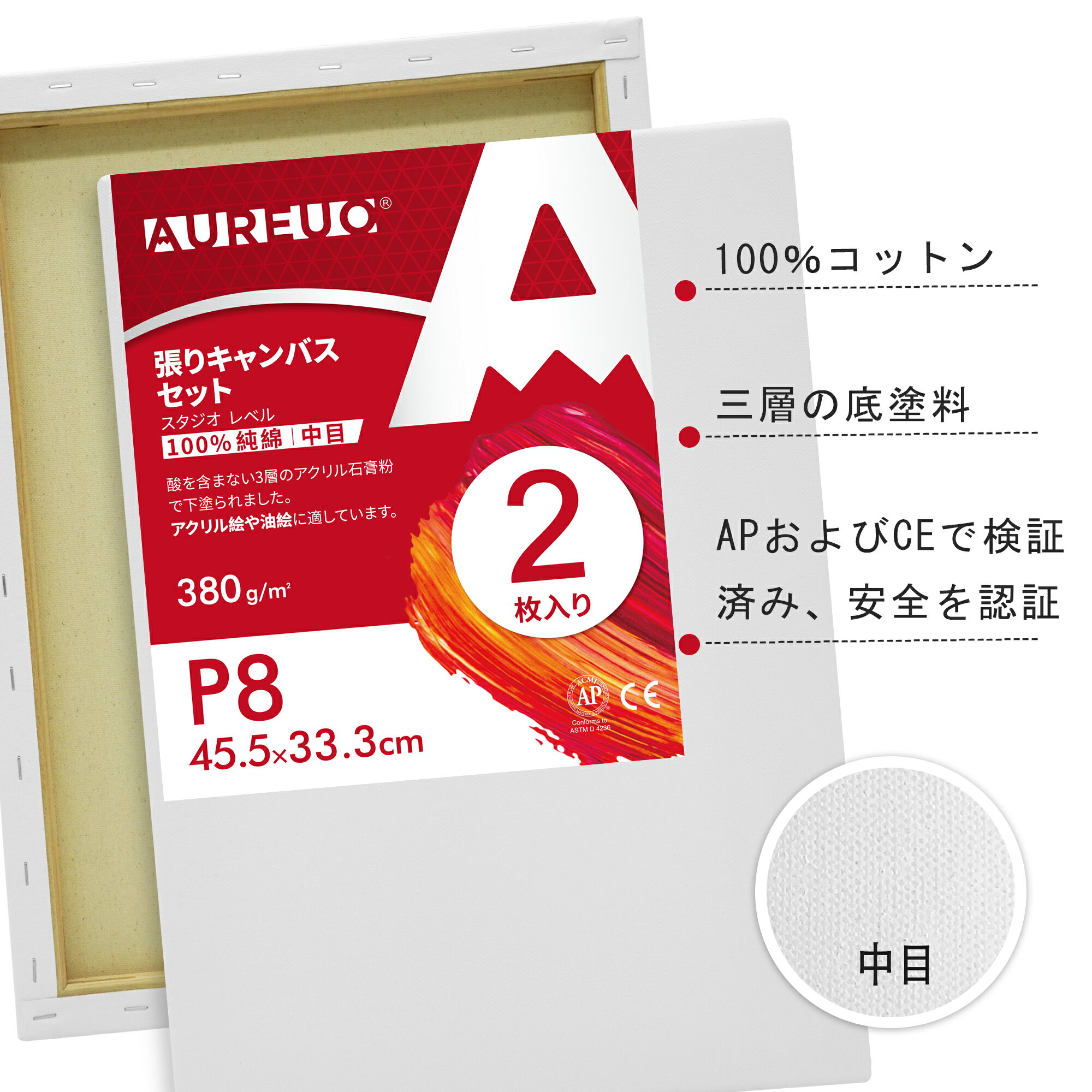 AUREUO 張りキャンバス セット P型 M型 中目 100%コットン マルチのサイズ選択可能 絵画用具 水彩画・油絵画・アクリル兼用 芸術絵創作 現代油絵 美術装飾