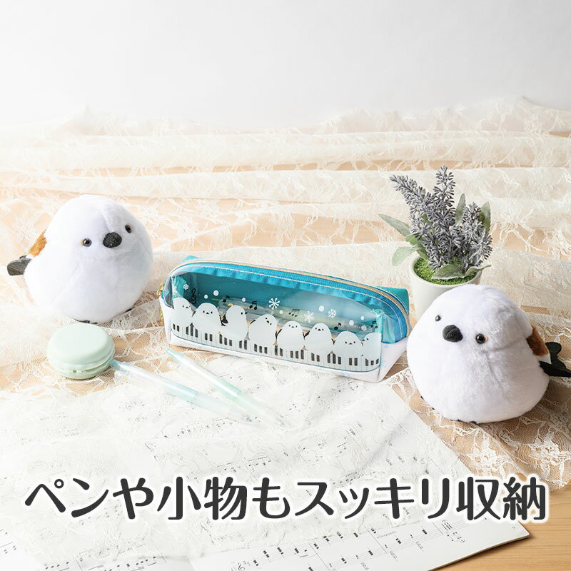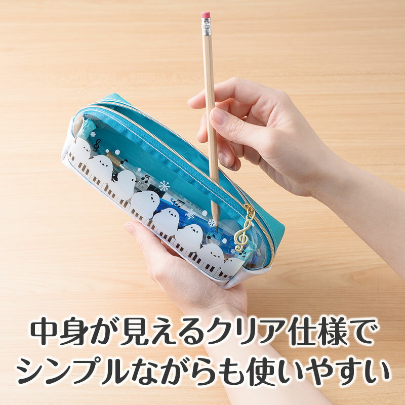 トリル♪シマエナガ クリアペンポーチ piano line ピアノ発表会 音楽発表会 演奏会 ピアノ教室 音楽教室 記念品 ギフト プレゼント ピアノ雑貨 音楽雑貨 ピアノグッズ ピアノ柄 かわいい 可愛い カワイイ 鍵盤柄 音符柄 男の子 小学生 筆箱 ペンケース 文房具