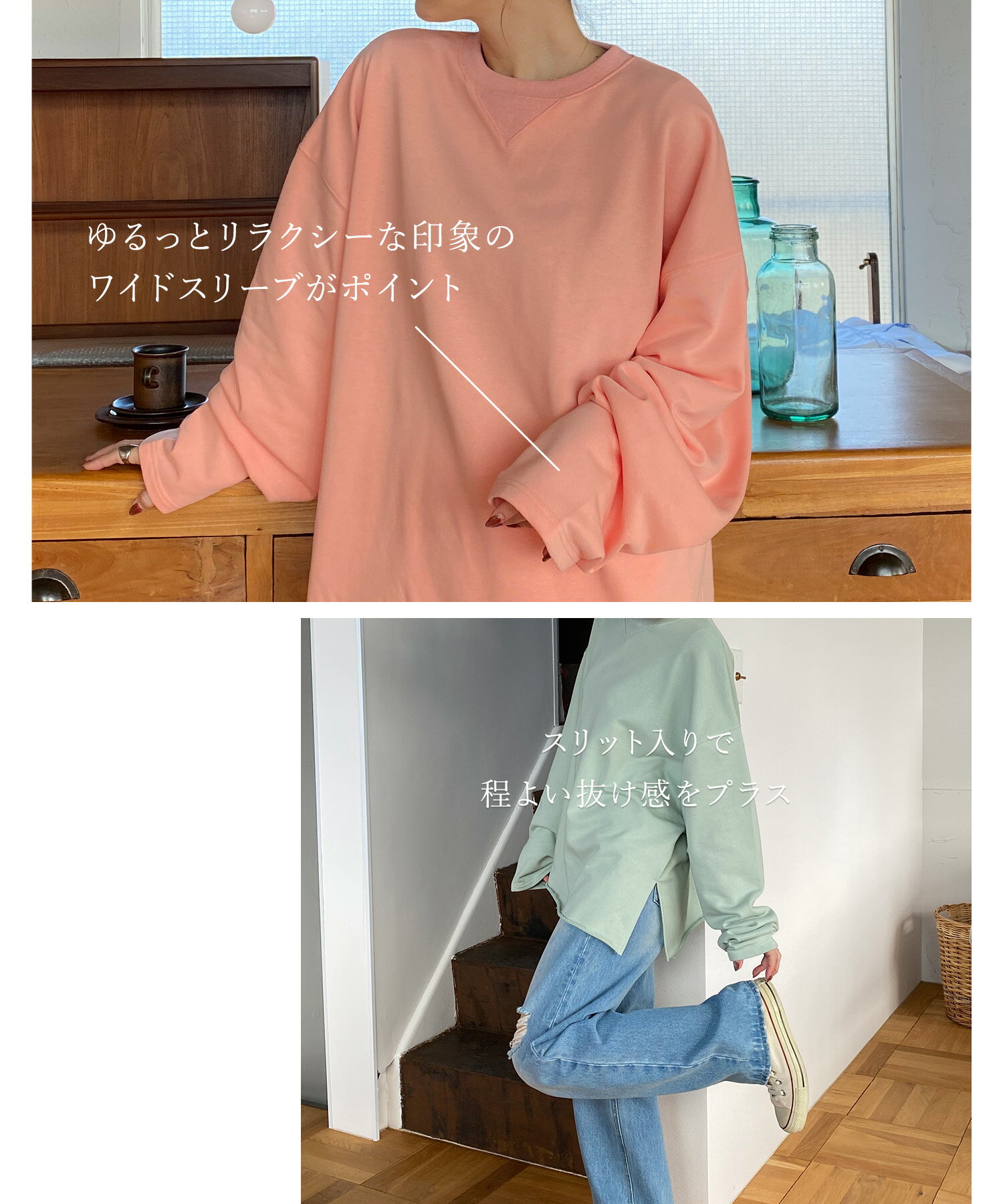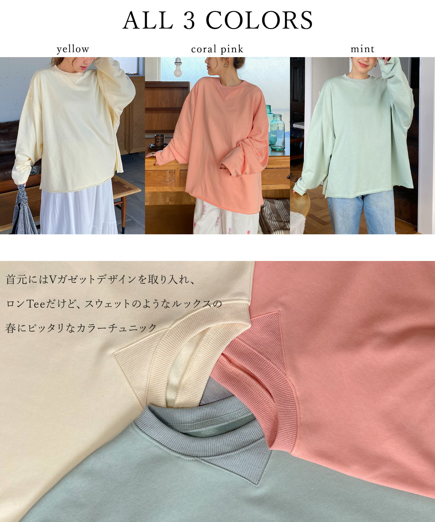【C】サイドスリットカラーチュニック カラーロンTee オーバーサイズ ルーズロンTee 長袖 ドロップショルダー シンプル 大きい ゆったり カジュアル 大人 レディーズ PICHI オリジナル 2.1 6900