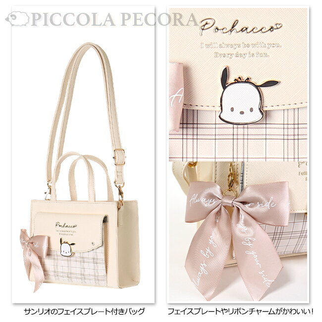 ショルダー サンリオ キッズ 子供 女の子 フェイス プレート リボン 付き 合皮 2wayショルダー 手さげ / 小学生 ティーン ジュニア クロミ シナモ ポチャ キティ