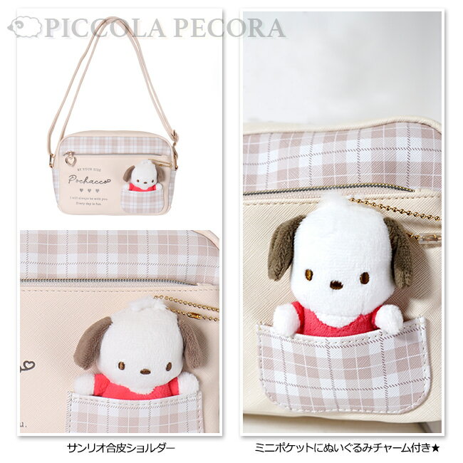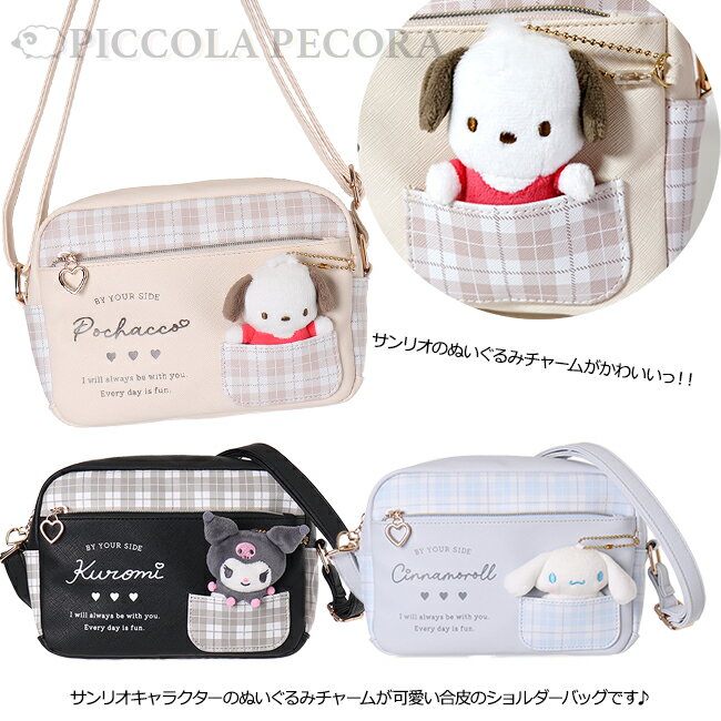 ショルダー 子供 キッズ 女の子 サンリオ ぬいぐるみ チャーム 付き 合皮 ミニショルダー バッグ / 小学生 ティーン ジュニア クロミ シナモ ポチャ