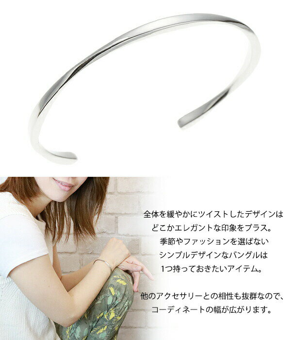 バングル レディース ツイスト シルバー サージカルステンレス 金属アレルギー対応 シンプル カジュアル ブレスレット 腕輪 プレゼント ギフト 送料無料 プレゼント 春夏秋冬 大人気 文字刻印無料