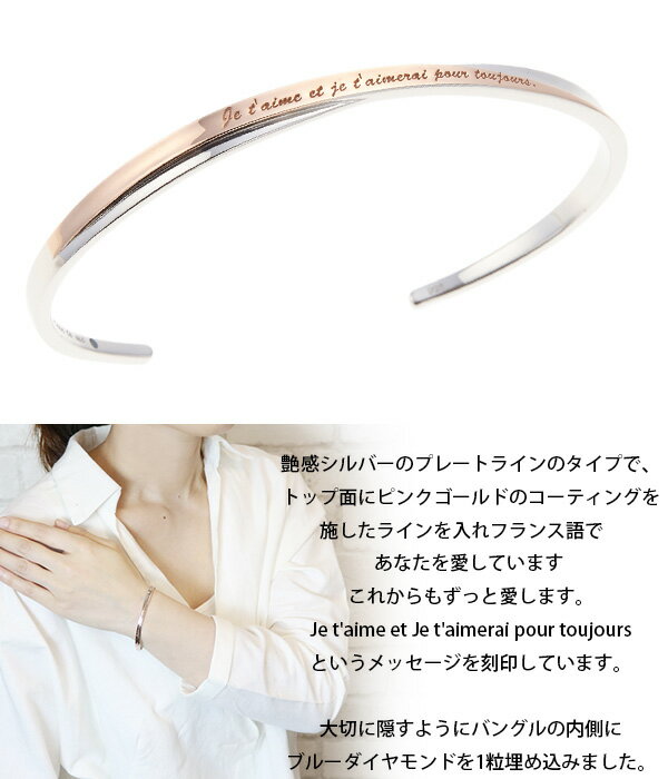 バングル レディース ブルーダイアモンド シルバー925製 ピンクゴールド メタル 大人かわいい シンプル カジュアル 愛 プレゼント用にも ブレスレット 送料無料英語筆記体刻印無料 春夏秋冬 大人気