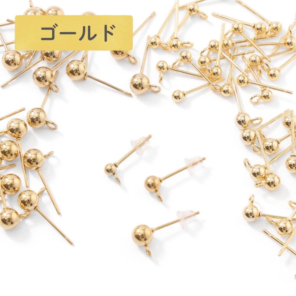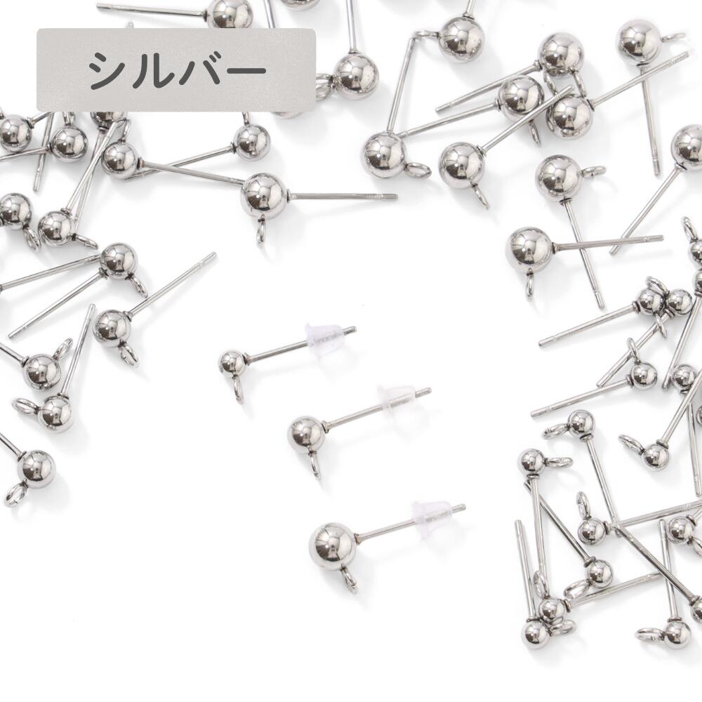 ●【毎日発送】【サージカルステンレス 316 】 カン付き ボール ピアス ×シリコンキャッチ ゴールド シルバー ピンクゴールド 3mm 4mm 5mm (カンの向き:横) 4個〜100個 ステンレス パーツ 金具 金属アレルギー対策 ハンドメイド アクセサリーパーツ 問屋 専門店