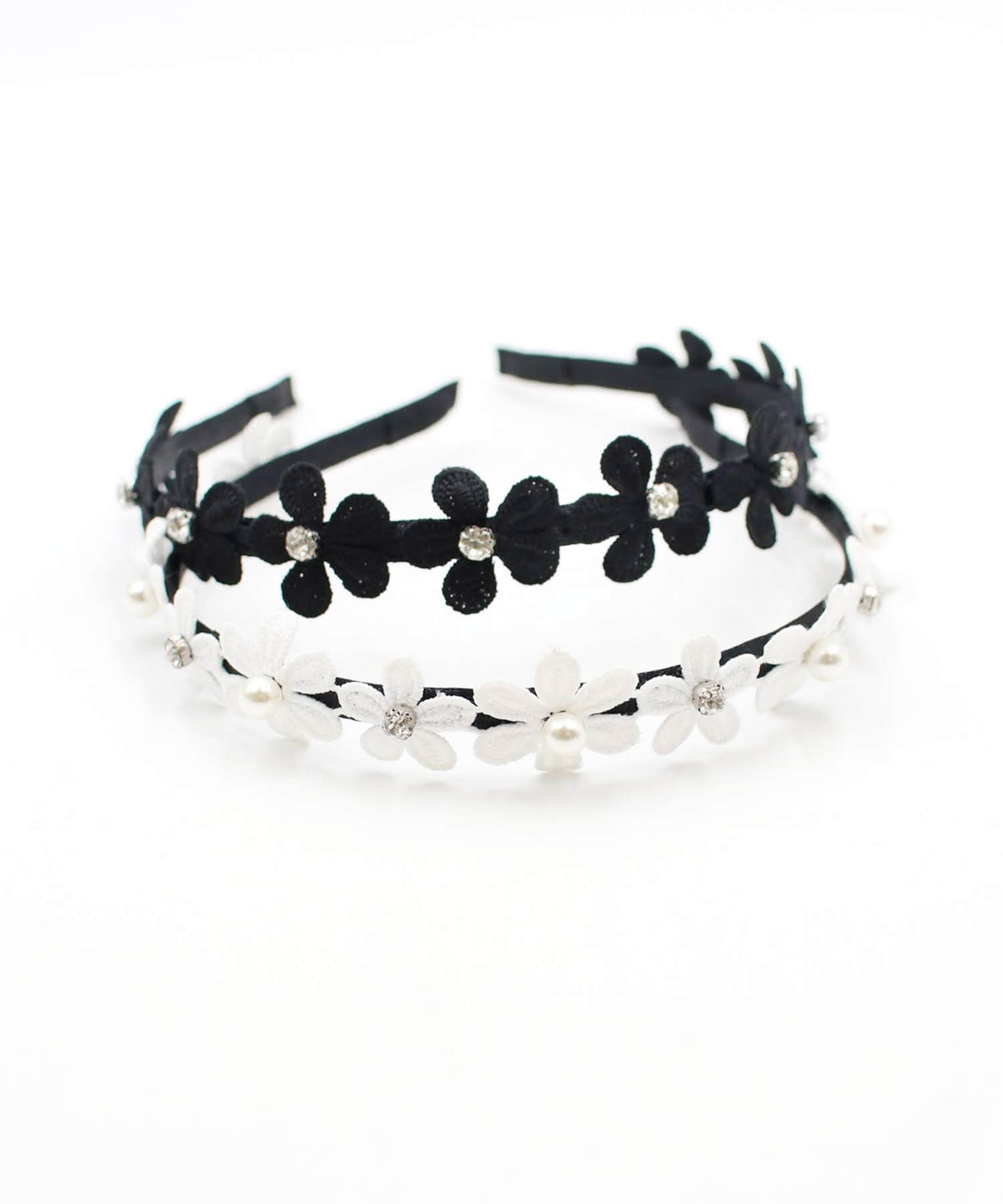 子供服Rora アントン カチューシャ 子供 フォーマルヘアアクセサリー キッズ 入学式 卒園式 結婚式 ヘアアクセサリー 白 黒 ホワイト ブラック お花カチューシャ フラワー 大人っぽい おしゃれ きらきら ストーン パール お出かけ お呼ばれ 大人っぽい