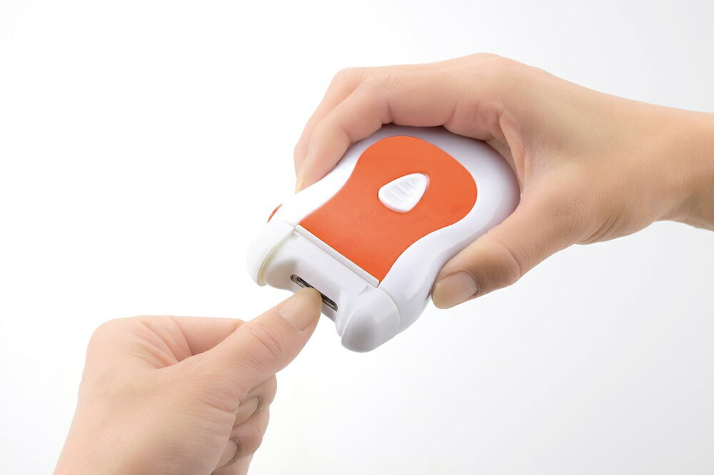 LEDライト付 電動爪切り カットするのではなく、削るから仕上がりキレイ!   爪に押し当てるだけ。硬い爪もラクラク処理!   電動式なので、簡単に爪を削ることができます。   触っても安全です。   皮膚に触れても大丈夫! 削った爪は容器内に入るから、掃除もラクラク!  飛び散った爪の掃除をしなくても大丈夫! ヘッド部分はまるごと水洗い!  水洗いできるので、衛生的です。  お掃除ブラシ付きです。 ヘッド部を付け替えて、かかとローラー!  付け替え簡単!程よい力加減で削りすぎにくい仕様です。 製品仕様 商品名: 電動爪切り&かかとローラー 品番:SV-6681 JANコード:4989918506681 商品サイズ:(約)68×100×30mm 商品重量:(約)120g 個装サイズ:(約)155×205×35mm 個装重量:(約)150g 個装形態:BP 原産国:中国 材質/仕様 ●本体:ABS樹脂 ●刃:タングステン鋼 ●カバー:ポリカーボネイト樹脂 ●かかとローラー部:石英 ●電源:単三形電池2本使用(別売) 付属品 お掃除ブラシ ●持ち手部:ポリカーボネイト樹脂 ●ブラシ部:ポリプロピレン樹脂