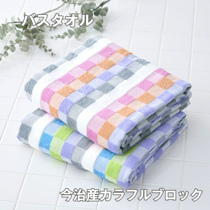 【送料無料】 今治産 バスタオル カラフルブロック 1枚 ブルー 清潔 快適 ソフト ふわふわ 吸水 速乾 パイル 綿 ジャガード織り グラデーション 国産 日本製 生活雑貨 日用雑貨 お風呂 洗面 スポーツ ギフト お祝い プレゼント プラン堂