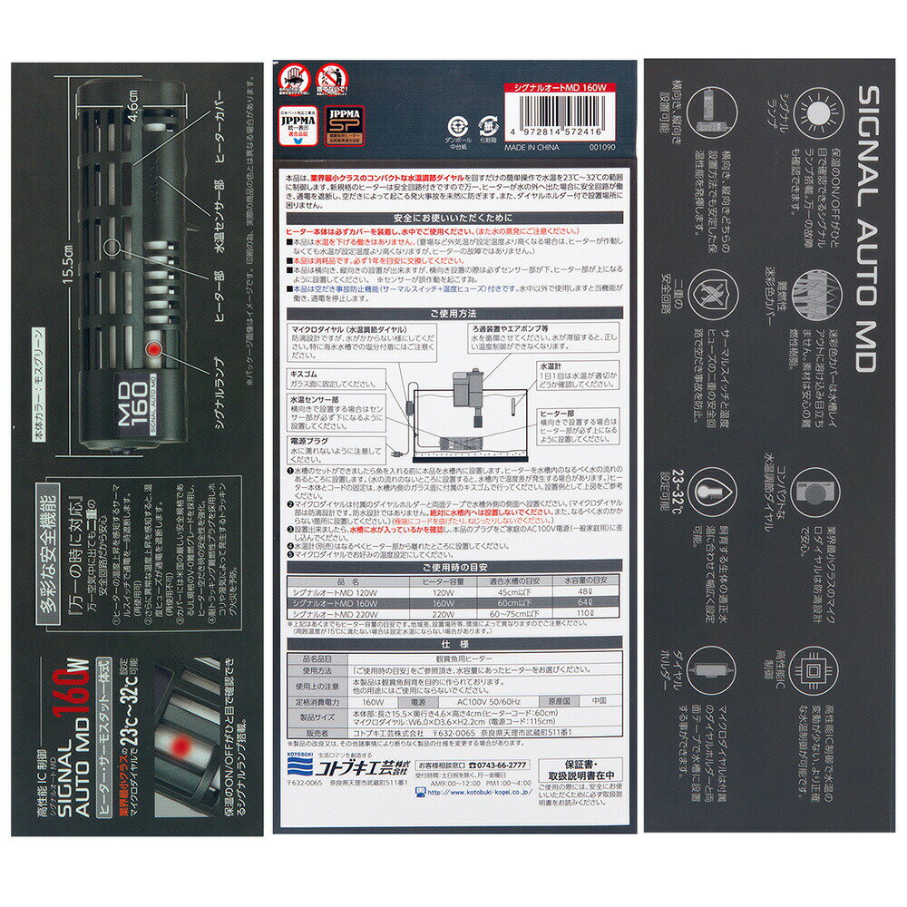 コトブキ工芸 シグナルオートMD 160W 〜60cm水槽用 サーモスタット一体式 アクアリウム 熱帯魚 ヒーター