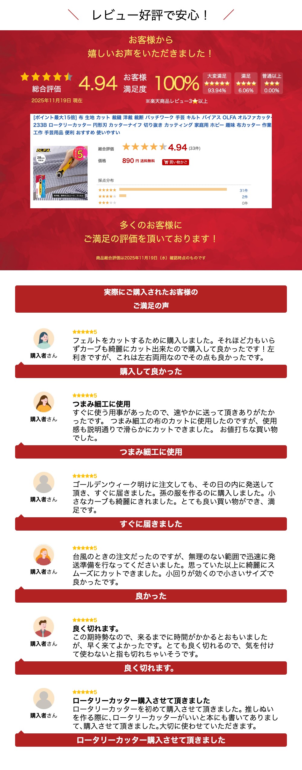 曲線も直線も思いのままにカット。【商品説明】小回りのきく直径28ミリ円形刃を装着したロータリーカッター。布や紙をはじめ、薄手のゴムシート、フィルムなどの切りにくい素材も自在にカットできます。ワンタッチで替刃の交換が可能です。【特長】■替刃式■左右両用【用途】■直線や曲線のカットに。【備考】布地やフィルムなどの切りにくい素材を扱うシーンにおいて、作業効率に革命をもたらしたロータリーカッターシリーズ。【替刃】■円形刃28ミリ替刃(RB28)■ミシン目ロータリー28替刃(XB194)【キーワード|DIY/手工具/図画工作/手芸/趣味/プラモデル/カッター/切る/アート/美術/切り絵/引越し/ダンボール/梱包/開封作業/】関連商品[ポイント最大15倍] 手芸 裁縫 裁断 洋裁 生地 布 ソーイング ...[ポイント最大15倍] コウモリ 撃退 退治 駆除 糞害 糞 フン コ...[ポイント最大15倍] 切り取り線 値札 折り目 チケット ペーパーク...1,200円880円950円[ポイント最大15倍] グリーンベル 匠の技 G-5150 ステンレス...[ポイント最大15倍] 近正 FB-200 FUNCRAFT 手芸 ク...[ポイント最大15倍] コウモリ 糞対策 撃退 退治 駆除 糞害 糞 ...5,000円1,010円840円[ポイント最大15倍] 切り絵 デザインナイフ 両利き用 替え刃付き ...[ポイント最大15倍] 【楽天ランキング1位獲得】カッターマット A4...[ポイント最大15倍] シロアリ 白蟻 羽アリ ハネアリ 巣 予防 ス...740円1,080円970円