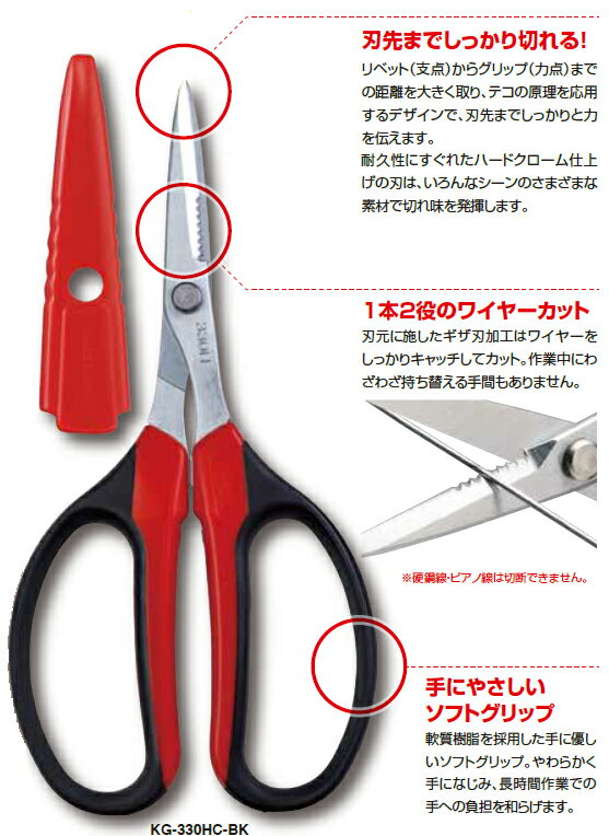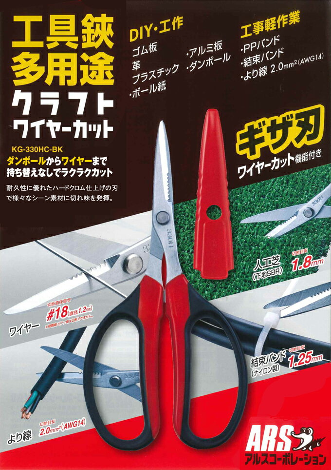 [ポイント最大15倍] アルス KG-330HC-BK 工具鋏多用途・クラフトワイヤーカット 160mm 工具鋏・電気工事用