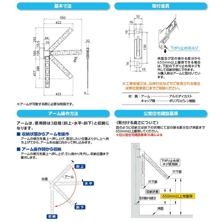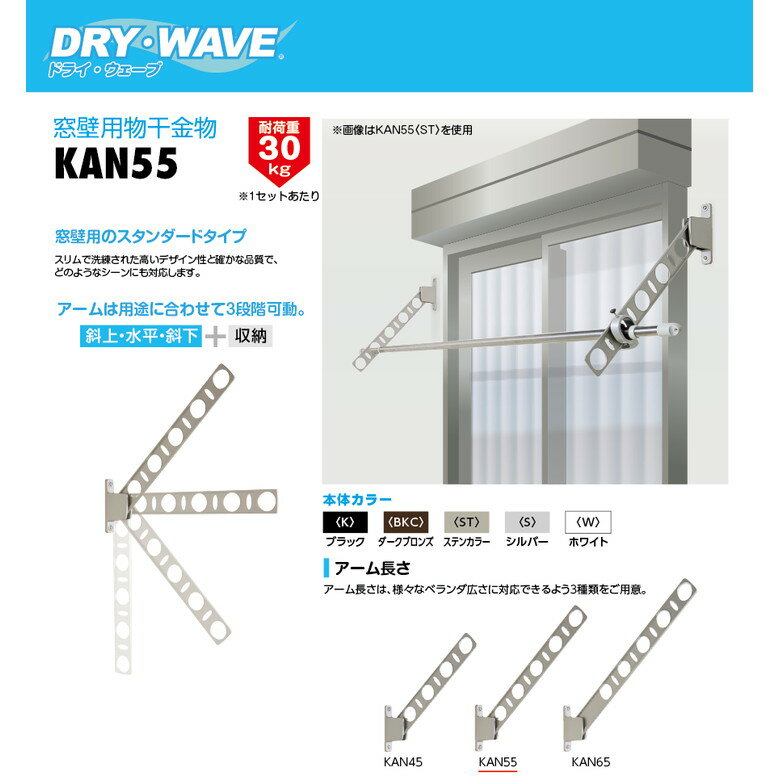 [ポイント最大15倍] DRY・WAVE(ドライ・ウェーブ) 窓壁用物金物 ホワイト 白 (斜上・水平・斜下・収納4方向) (2本で1組) KAN55 ベランダ 洗濯物 物干し スリム 屋外物干し 3段階可動 タカラ産業 外干し 新築 折り畳み 収納 竿掛け