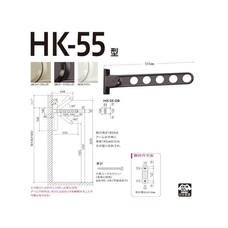 [ポイント最大15倍] 川口技研 ホスクリーン 屋外窓壁用 物干 ものほし HK-55-LB 2本セット ライトブロンズ HK型 55cm 屋外用 洗濯 ランドリー 人気