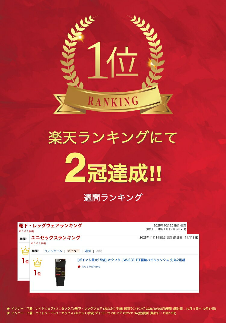 [ポイント最大15倍] オタフク JW-231 BT蓄熱パイルソックス 先丸2足組