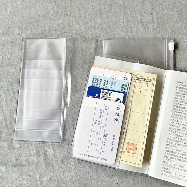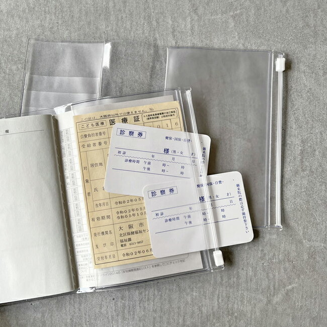 母子手帳 手帳カバー 手帳ケース 大容量 A6サイズ ポケット付 日本製 0.3mm ファスナーポケット ジップポケット 透明 ケース ホルダー 診察券 保険証 多機能 診察券カバー 収納 医療証 A6 母子手帳 クフウ kufuu