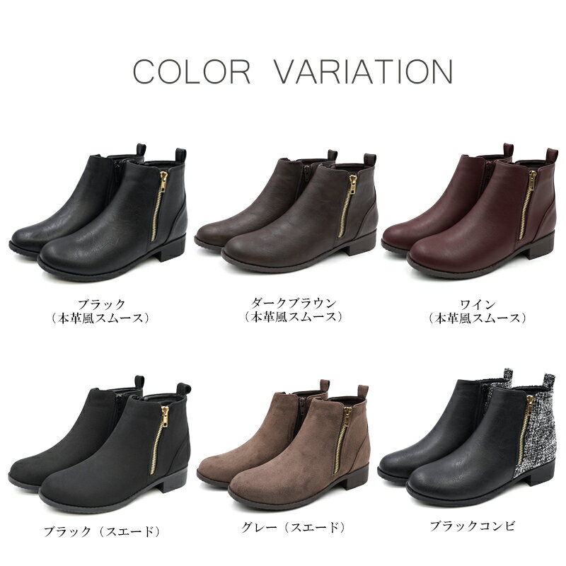 【クーポンで期間限定150円OFF】 ブーツ 3cmヒール ショートブーツ 秋冬 レディース サイドジップ ショート 防滑 防寒 甲高 幅広 スエード 全9色 黒 ベージュ S-LL 送料無料 ※沖縄除く 太ヒール 疲れない 歩きやすい ローヒール 本革風