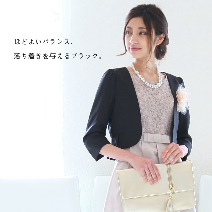 【LLサイズのみ】結婚式 ジャケット お呼ばれ 羽織 親族 七五三 二次会 フォーマル 謝恩会 演奏会 発表会 披露宴 ノーカラージャケット PLIQUA プリカ 3-2005-1 ブラック
