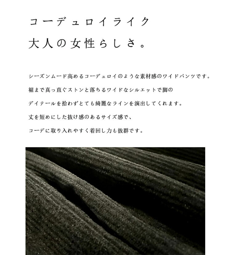 コーデュロイ パンツ レディース きれいめ ワイドパンツ 秋冬 コーデュロイパンツ 八分丈 ワイド ストレートパンツ ゆったり ウェストゴム イージーパンツ 大きいサイズ 体型カバー 着痩せ ガウチョ コーデ 人 通勤 OL