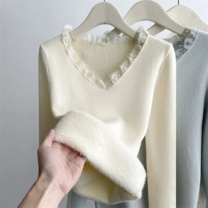 Vネッ トップス ニットソー 裏起毛 レディース セーター ニット