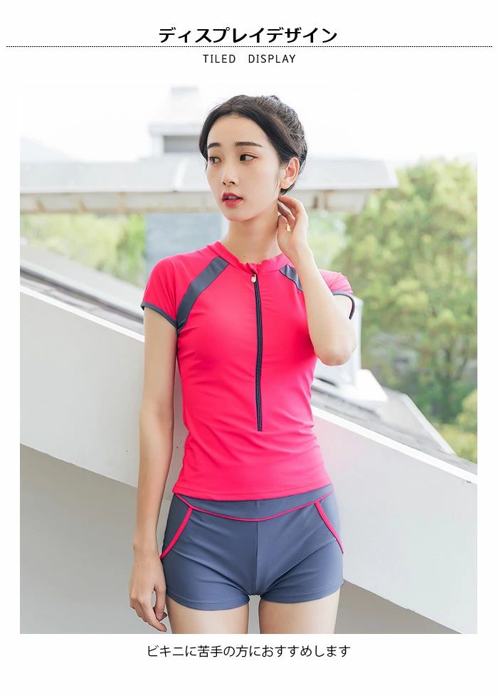 【送料無料】水着3点セット レディース フィットネス セパレート タンキニ ミニスカート ショートパンツ 半袖 ノースリーブ ハイネック ラウンドネック ワイヤーレス パッド付き ストレッチ 爽やか お洒落 スポーティ 夏物 春新作