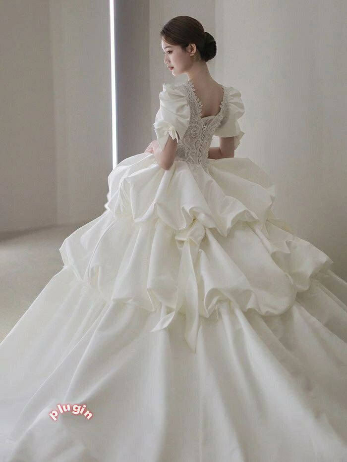 ウェディングドレス クラシカル 花嫁ドレス ビーズ刺繍 パフスリーブ プリンセスライン ロングトレーン 結婚式 披露宴 二次会 フォトウェディング 前撮り 後撮り 豪華ドレス S-5L 大きいサイズ bc042n1n1f6