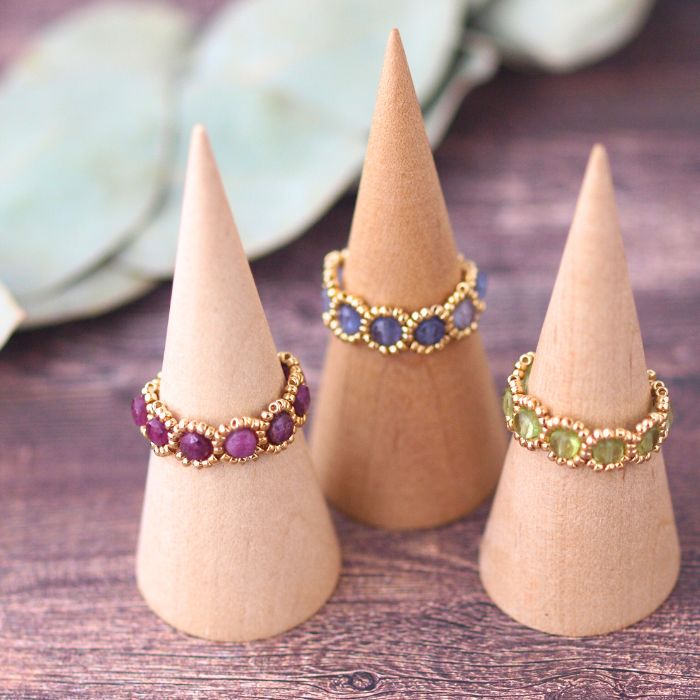 \クリスマスまでポイント5倍!/ビーズキット アクセサリーキット 手作り テグス編みキット スキニーストーン・リングキット ビーズ キット ビーズキット リングキット 編みリング 天然石 ルビー ペリドット タンザナイト ラブラドライト ハンドメイド 手芸 ゴールドリング