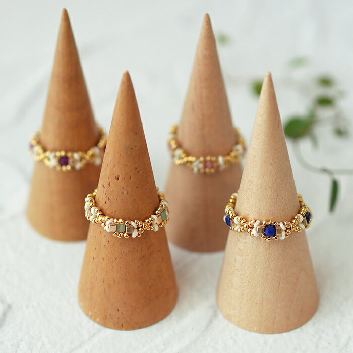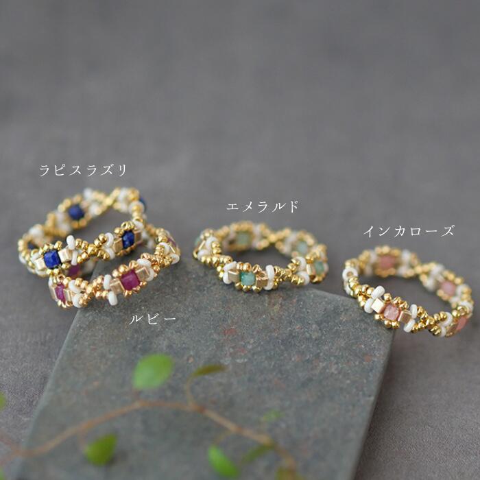 ビーズキット アクセサリーキット 手作り テグス編みキット スクエアスキニー・リングキット ビーズ キット ビーズキット リングキット 編みリング 天然石 エメラルド ルビー インカローズ ラピスラズリ ハンドメイド 手芸 ゴールドリング