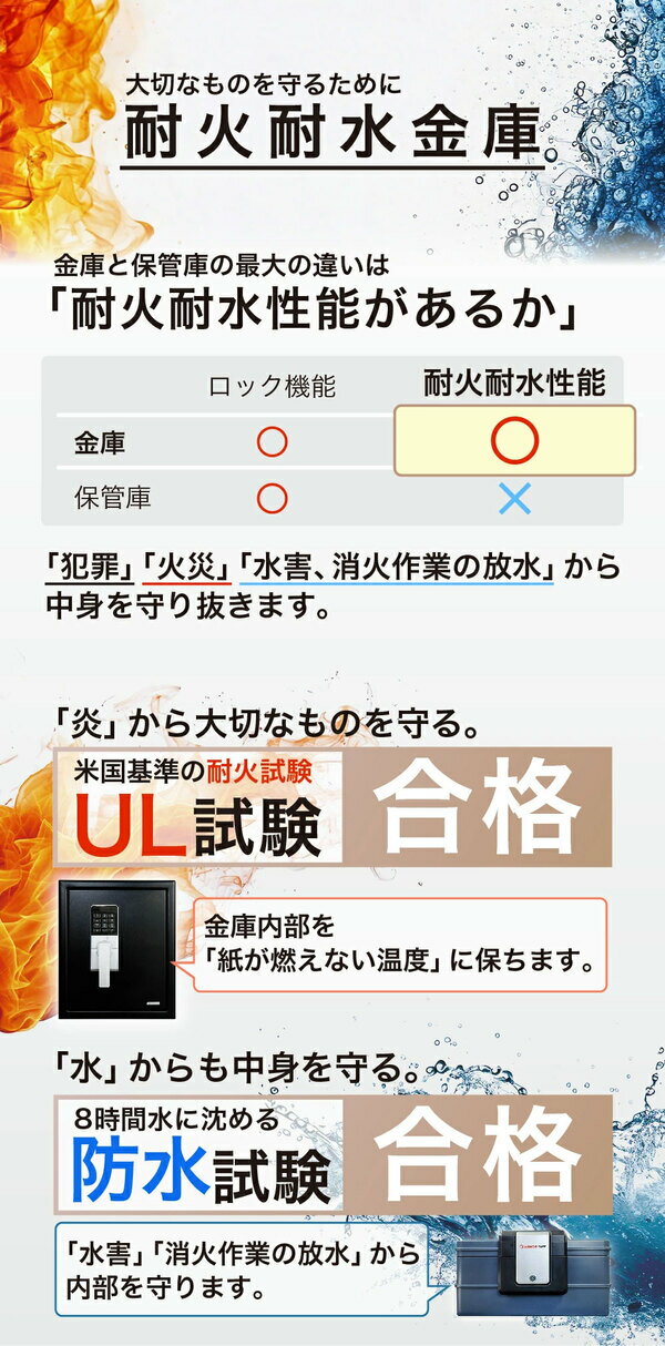 ■整理整頓の魔法、新しいキッチン収納で生活を軽やかに! ■涼やか夏映えラグで、私の部屋が一番おしゃれ! ■香りで癒す、大人のくつろぎ。 ■毎日を、さらっと心地よく整える。 ■ランドリー・サニタリーアイテム ■子供部屋のかわいいインテリア ■心ととのう、私のガーデンスペース ■すやすや快眠マットレス 配送について> > ご購入前の確認事項> > 注意:モニターの発色によって、多少お色味が異なる場合がございます。▼シリーズアイテム▼ シリンダータイプ H30 容量17L シリンダータイプ DS23-K1 容量11L DS23-EK 容量11L 2117D 容量5L 【受注生産】 2037D 容量16.8L 【受注生産】2030D 容量9.8L 2017D 容量6.9L CB35 容量7.6L 【受注生産】容量48.5L 【受注生産】3091SK-BD 容量25.8L 【受注生産】2096D容量56.5L 【受注生産】2092D容量35.6L 小型でもしっかり耐火耐水金庫【ARMORSAFE20シリーズ】火災や水害に備えるナカバヤシオリジナルブランド金庫です。オリジナルだからこその価格で確かな安心をお届けします。ARMORSAFE20シリーズはコンパクトな耐火耐水金庫です。【製品概要】出し入れがしやすい上開きです。握りやすい取っ手付きなので持ち運ぶことができます。・30分耐火(UL規格試験合格品)・8時間耐水・内部容量6.9L・A4用紙1000枚収納可・プッシュ式開錠・取っ手付き----------------------------------------------------------【基本送料無料】設置場所により送料や設置費が別途必要になる場合がございます。【配送日数】お届け場所により配送日数は変動します。詳細をご希望の場合は「金庫お見積りフォーム」よりお問い合わせください。----------------------------------------------------------サイズ【本体サイズ】外寸:(約)幅407×奥行322×高さ174mm内寸:(約)幅338×奥行218×高さ93mm【梱包サイズ】(約)幅335×奥行415×高さ160mm注意事項【商品の色について】実際の商品の色にできるだけ近づけるよう、撮影を行っておりますが、商品の色はご使用のモニターによって実際の明るさや色と多少異なって見える場合が御座います。予めご了承ください。【キャンセルについて】注文完了後のキャンセルはお受けしておりません。出荷日前々日までは変更をお受けいたしますが、それ以降の変更は不可となります。発送準備完了後のキャンセル・返品・交換はお受け出来ませんので予めご了承ください。他、配送についての注意事項等は利用案内(配送について)をご確認下さい。【配送について】本製品は、お届け先により配送設置費や配送日数が変動します。正確な納期につきましては、お見積りにてお知らせいたします。お届けは日本国内のみとなります。(海外発送不可)重量【本体重量】約8.2kg【梱包重量】約10.7kg機能・完成品・製品保証期間1年・付属品:取扱説明書、保証書、非常開錠キー×2、単三電池×4