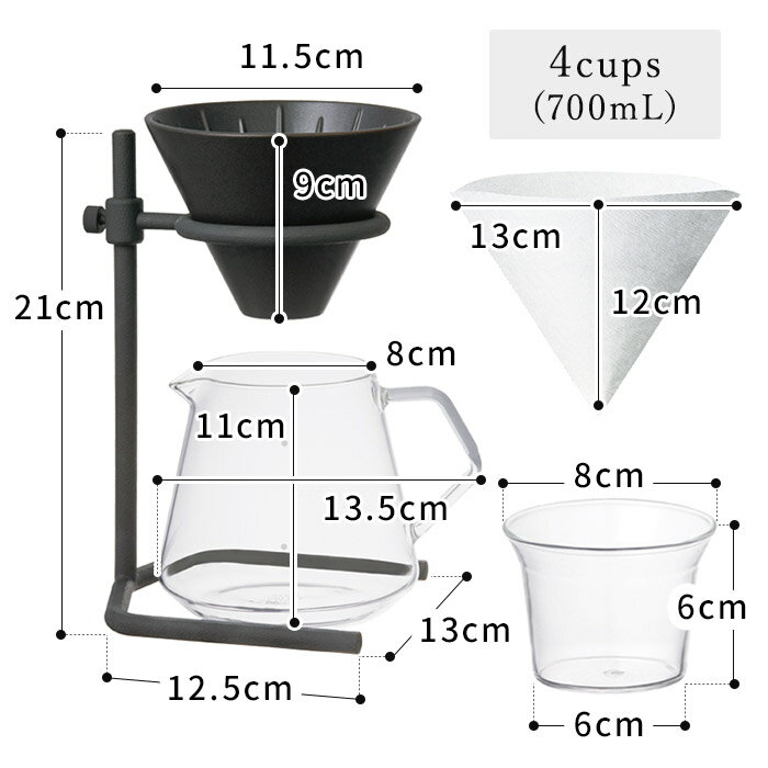 KINTO キントー SCS-S04 ブリューワースタンドセット 4cups SLOW COFFEE STYLE Specialtyは、職人の心意気や熱意からインスピレーションを受けたコーヒーウェア。いつものコーヒータイムをより豊かにしてくれるブリューワースタンドの5点セットです。鋳物ならではの無骨な表情のスタンドと磁器製ブリューワーに、透明感のある4人用サイズの耐熱ガラスサーバーが組み合わされています。スタンドは高さ調整ができるので一人用のカップでもドリップできます。職人により、丹念に作り込まれた拘りのデザイン。ゆったりとした時間を尊ぶ人へ向けたスペシャルなコーヒーウェアです。届いてすぐにドリップできるペーパーフィルターも付属しています。 KINTO キントー SCS-S04 ブリューワー ドリッパー スタンド セット 27573 コーヒー 陶磁器 急須 ポット 容器 耐熱ガラス ブラック 黒 スタンド 高さ調整 SLOW COFFEE STYLE Specialty スローコーヒースタイル 700mL 珈琲 ドリップ サーバー ドリッパー ペーパーフィルター 耐熱 ガラス ハンドドリップ 4杯 カップ 4人 4カップ ドリップ レンジ 食洗機対応 おしゃれ シンプル 北欧 プレゼント ギフト 贈答品 おすすめ 黒 ブラック モノトーンKINTO SCS-S04 ブリューワースタンドセット 4cups ( コーヒードリッパー ドリップ 珈琲 ) 豪華 特典付き SIZE 商品名 KINTO キントー SCS-S04 ブリューワースタンドセット 4cups 品番 / JAN 27573 / 4963264501637 サイズ 約 横幅12.5cm × 奥行き13cm × 高さ21cm 重量 約 850g 容量 700mL 材質 スタンド:18-8 ステンレス鋼 ブリューワー:陶器 サーバー・ホルダー: 耐熱ガラス製器具 耐熱温度差 120度(サーバー、ホルダー、ブリューワー) 備考 ・サーバー、 ホルダー:電子レンジ使用可〇 ・ブリューワー、 サーバー、 ホルダー:食器洗浄乾燥機使用可〇 ・使用区分以外には使用しないでください ・直火にかけないでください ・洗浄の際はクレンザーやたわしを使用しないでください ・ガラスの急冷は破損の原因となりますので熱いうちに濡れた布で触れたり、濡れた場所に置かないでください ・その他、取り扱い説明書をご覧のうえご使用下さいませ。 SLOW COFFEE STYLE Specialtyは、職人の心意気や熱意からインスピレーションを受けたコーヒーウェア。いつものコーヒータイムをより豊かにしてくれるブリューワースタンドの5点セットです。鋳物ならではの無骨な表情のスタンドと磁器製ブリューワーに、透明感のある4人用サイズの耐熱ガラスサーバーが組み合わされています。スタンドは高さ調整ができるので一人用のカップでもドリップできます。職人により、丹念に作り込まれた拘りのデザイン。ゆったりとした時間を尊ぶ人へ向けたスペシャルなコーヒーウェアです。届いてすぐにドリップできるペーパーフィルターも付属しています。 KINTO ( キントー ) シリーズは こちら ギフトバッグラッピングは こちら キッチン総合 ランキング