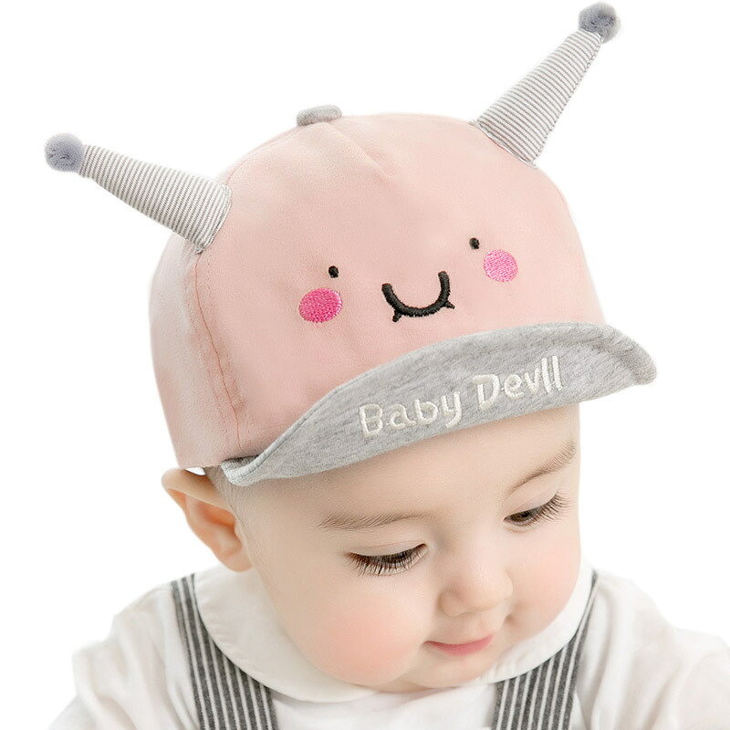 送料無料 キャップ 帽子 ハット つば付き ベビー 赤ちゃん 男の子 女の子 ロゴ 春 夏 日除け 紫外線 ツノ デビル 可愛い かわいい カジュアル シンプル 出産祝い お出かけ