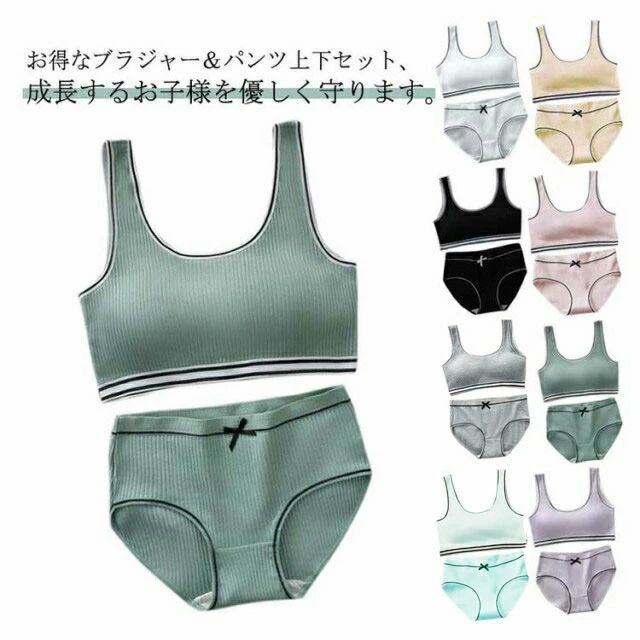 リブロゴデザインがおしゃれなジュニア向けインナー上下セットです。 バッククロスのハーフトップブラとスタンダードショーツの2点セット♪ シンプルなちょうどいいデザインで使いやすく、スポーツ時にもgood☆ 【サイズについて】 ワンサイズ ブラジャー:アンダーバスト:60-78cm 【平置き採寸】 アンダーバスト:28cm(最大伸び幅:37cm) 着丈(肩紐含む):25cm 【素材について】 綿