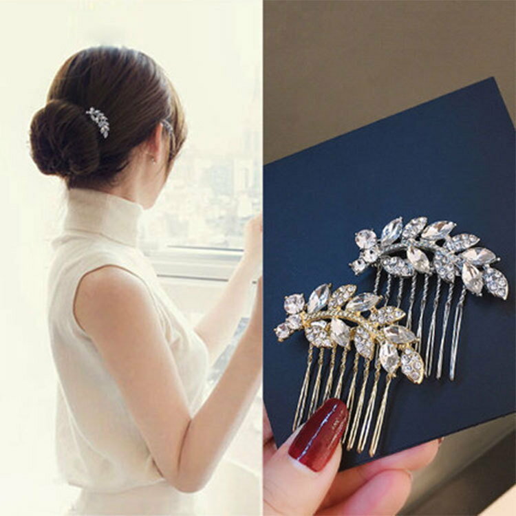送料無料 コーム ヘアコーム 簪 かんざし レディース 女性 婦人 ヘアアクセサリー 髪飾り まとめ髪 ラインストーン リーフ 葉 キラキラ 定番 ベーシック かわいい おしゃれ きれいめ 上品 お出かけ パーティ 通勤 ヘアアレンジ 髪留め 金色 銀色