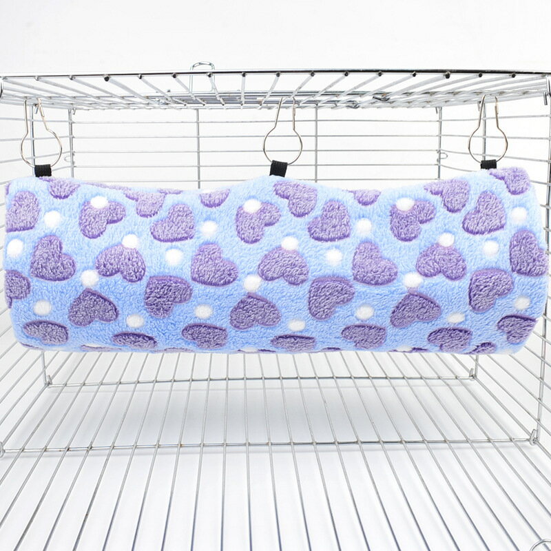 送料無料 小動物用ハンモック トンネル型 吊り下げ ペット用品 ハウス モコモコ ふわふわ ベッド 寝床 揺れる 暖かい ハート柄 ハムスター モルモット フェレット