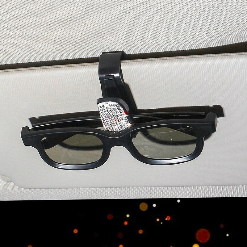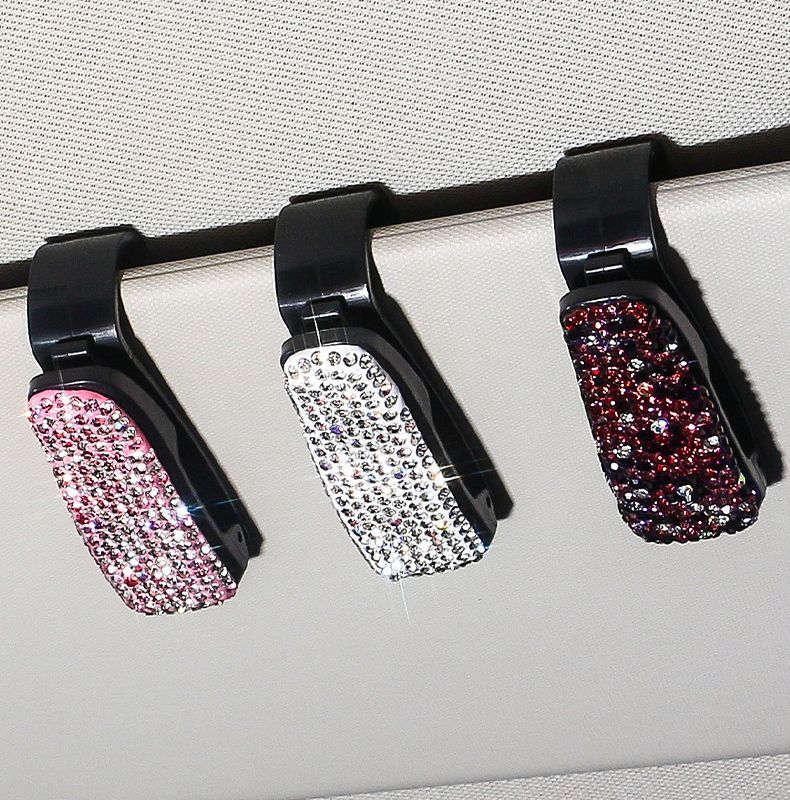 送料無料 サングラスホルダー メガネクリップ カードクリップ 車用品 車載アクセサリー 車内収納 ラインストーン キラキラ かわいい おしゃれ サンバイザー