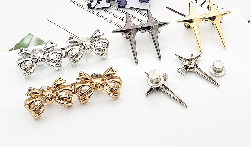 ボトムスのウエスト調節用のウエストバックルです。 ピンで留めるだけなので、取り付け簡単◎ 星やリボンの見た目もおしゃれなデザインです♪ 【サイズについて】 画像をご参照ください。 【カラーについて】 生産ロットにより柄の出方や色の濃淡が異なる場合がございます。 お使いのモニターや撮影時の光の加減などにより 画像と実際の商品のカラーが異なる場合もございます。 予告なしにカラーやデザインなどの変更がある場合もございます。 【素材について】 合金
