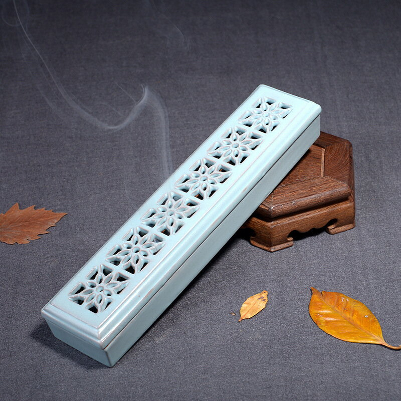 送料無料 線香立て 横置き 線香ケース 蓋付き 寝かせる 線香皿 お香立て スティック アロマ線香 仏具 墓参り用品 お彼岸 お盆 香炉皿 仏壇 小物 インテリア 透かし彫り おしゃれ スタイリッシュ スクエア 四角