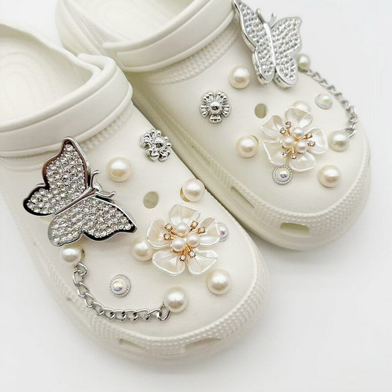 送料無料 シューパーツ クロックス用 シューアクセサリー レディース シューズアクセサリー 靴アクセサリー 20個セット ラインストーン フェイクパール 蝶々 バタフライ フラワー 花 チェーン おしゃれ かわいい ガーリー きれいめ キラキラ