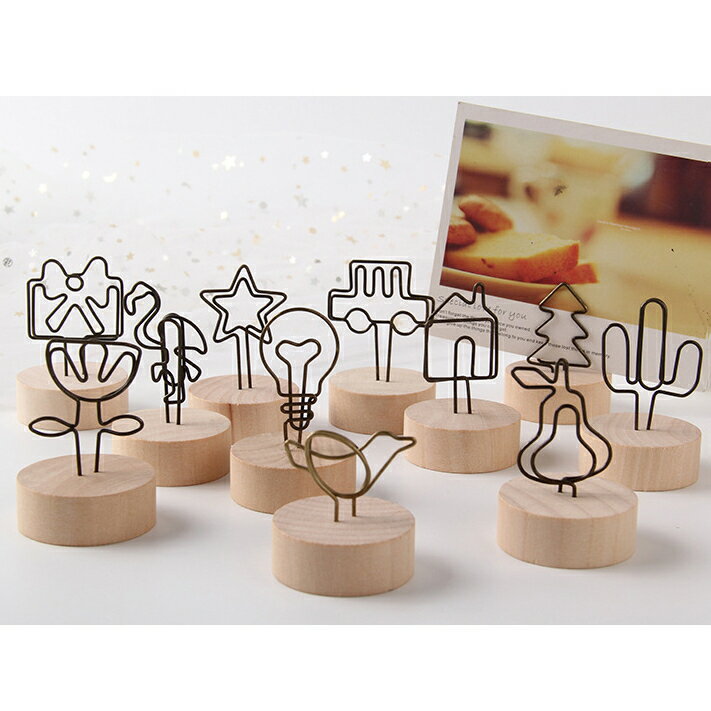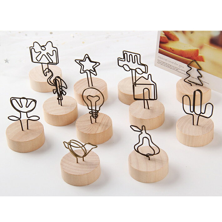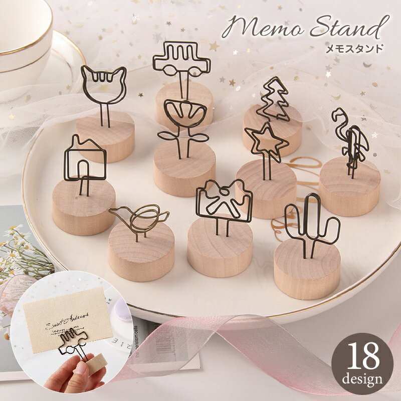 送料無料 メモスタンド メモクリップ カードホルダー カード立て 写真 小物 雑貨 インテリア 文房具 文具 卓上 木製 花 星 ネコ 猫 シンプル おしゃれ 可愛い
