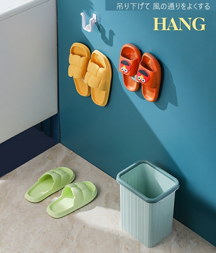 送料無料 スリッパホルダー 単品 スリッパラック サンダル掛け ウォールフック 壁掛け収納 浴室 バスルーム ベランダ 穴あけ不要 粘着 通気性 プラスチック シンプル