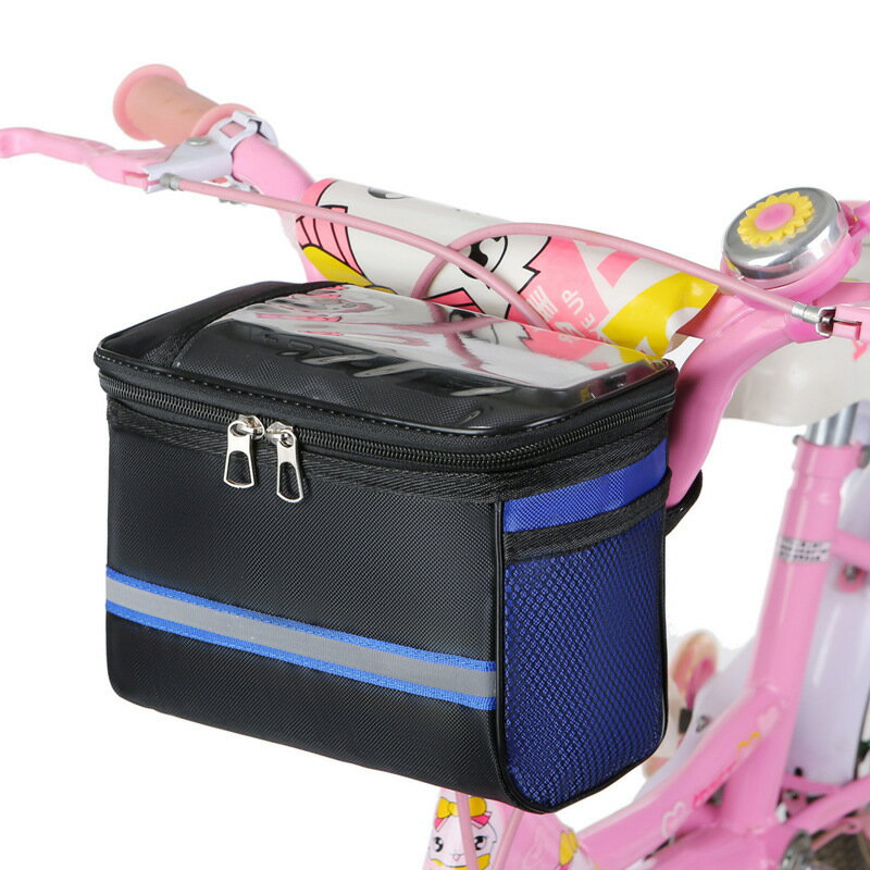 送料無料 自転車バッグ フロントバッグ 車体装着 かばん 鞄 面ファスナー 子供用自転車 かご ハンギング 簡単取り付け ハンドルバッグ ストライダー マウンテンバイク クリアポケット メッシュポケット おしゃれ
