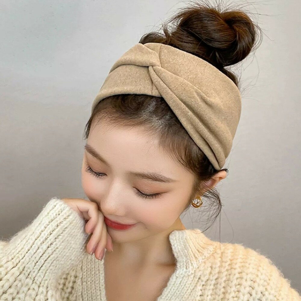 送料無料 ヘアバンド ヘッドバンド レディース 女性 ヘアアクセサリー ファッション雑貨 ターバン風 クロス 幅広 大きめ 洗顔 無地 ブラウン グレー オフホワイト ブラック シンプル フェミニン 可愛い キュート 大人女子
