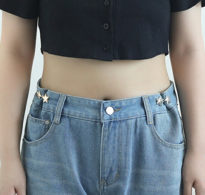 送料無料 ウエストバックル 4個セット ウエストアジャスター ウエスト調整 星 スター フック ジーンズ デニム ズボン スカート ボトムス お直し 簡単 縫製不要 詰める 可愛い